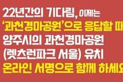 (케이엠뉴스) 양주시가 과천경마공원 양주시 유치를 위한 범시민 10만 명 서명운동에 본격 돌입했다. 양주시는 지난 23일 '과천경마공원 양주시 유치 추진위원회' 발대식과 함께 10만 명 서명운동을 추진한다고 30일 밝혔다. 서명은 양주시 홈페이지를 통한 온라인 서명과 오프라인 서명부 작성 두 가지 방식으로 진행되며, 양주시민뿐 아니라 국민 누구나 참여할 수 있다. 양주시가 경마공원 유치 후보지로 제시한 곳은 광적면 광석리 일원의 광석지구(약 116만㎡)다. 해당 부지는 2004년 택지개발지구로 지정된 이후 22년간 방치된 곳으로, 토지 보상이 완료돼 별도의 보상 절차 없이 즉시 개발에 착수할 수 있다는 점이 최대 강점으로 꼽힌다. 시는 경마공원이 이전될 경우 연간 약 500억 원의 지방세 수입과 약 3,000명의 상주 인력 유입, 방문객 증가에 따른 지역 상권 활성화 등의 효과를 기대하고 있다. 양주시 관계자는 "범시민 서명운동은 양주시의 의지를 정부와 한국마사회에 직접 전달할 수 있는 가장 강력한 방법"이라며 "시민 여러분의 적극적인 동참을 부탁드린다"고 말했다.