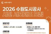 (케이엠뉴스) 수원도시공사가 21일부터 다음 달 4일까지 2026년도 제8기 시민 서포터즈를 모집한다. 수원시민과 수원 지역 직장인이면 신청 가능하며, 개인 블로그 및 SNS 등을 운영하거나 공공기관 서포터즈 경력자는 우대한다. 특히 사진, 영상(쇼츠·릴스) 등 이미지 활용에 대한 전문 지식이 있는 지원자에게는 가산점 부과된다. 올해 모집인원은 모두 6명이다. 선발된 서포터즈에는 소정의 원고료를 매달 지급하며, 원활한 활동을 위해 서포터즈 신분증·명함 등도 제공된다. 발표는 다음 달 9일이며, 자세한 내용은 공사 홈페이지 및 SNS(블로그·인스타그램·페이스북)를 참조하면 된다. 공사는 시민 소통 강화와 정보 전달 등을 위해 지난 2019년부터 시민 서포터즈를 운영하고 있다. 이영인 사장은 “공사의 소식을 SNS를 통해 발 빠르게 전해줄 시민 서포터즈에 많은 지원 바란다”라고 말했다.