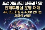 (케이엠뉴스) 포천문화관광재단이 운영하는 포천아트밸리 천문과학관이 약 1년간의 준비와 개선 사업을 마치고, 3월 4일부터 새롭게 단장한 천체투영실 운영을 재개한다. 2014년 개관한 포천아트밸리 천문과학관은 연간 약 30만 명의 관람객이 찾는 경기 북부 대표 과학문화시설로 자리 잡아 왔다. 그러나 천체투영실 시설 노후화로 관람객 이용에 불편이 발생함에 따라, 포천문화관광재단은 지난해부터 시설 개선 사업을 추진했다. 이번 개선 사업은 ‘오감을 자극하는 몰입형 우주 체험’을 목표로 진행됐다. 기존 장비를 전면 교체하고 4케이(K) 초고해상도 영상 시스템을 도입해 실제 우주 공간에 있는 듯한 생생한 시각적 경험을 제공하도록 구성했다. 또한 영상 흐름에 따라 좌석이 움직이는 모션 장비를 설치해 4디(D) 체험형 콘텐츠를 구현했다. 신규 영상 콘텐츠 ‘콤콤(미지의 행성을 찾아 떠나는 우주 여행)’을 비롯해 스카이다이빙, 달 탐사 등 다양한 체험형 영상을 순차적으로 상영할 예정이다. 이를 통해 어린이들에게는 우주와 과학에 대한 꿈과 호기심을, 성인 관람객에게는 색다른 과학문화 체험을 제공할 것으로 기대된다.