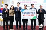 (케이엠뉴스) 안양시가 NH농협으로부터 안양사랑 신용카드 사용적립금 약 1억4940만원을 전달받았다. 시는 25일 오후 4시 시청 3층 접견실에서 최대호 안양시장, 이상하 NH농협 안양시지부장 등 8명이 참석한 가운데 전달식을 열었다. 안양사랑 신용카드 사용적립금은 안양시청 기업(법인)카드, 공무원 복지카드, 보조금 카드 등 NH농협과 제휴된 카드를 사용할 때마다 일정 비율로 조성되는 기금(캐시백)이다. 지난 2024년 약 1억2843만원이던 적립금은 지난해 약 1억4940만원으로 전년 대비 약 16% 증가했다. 시 관계자는 “예산 집행의 투명성을 높이기 위해 현금보다 카드 사용을 권장하고 있으며, 안양사랑 신용카드 적립금을 다음 연도 일반회계 세원으로 활용하고 있다”고 설명했다. 시는 이번 사용적립금도 올해 제2회 추경 세입예산에 편성해 시민 복지사업 등에 사용할 예정이다.