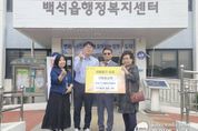 (케이엠뉴스) 양주시 백석읍은 지난 17일 생명샘교회가 지역 내 어려운 이웃을 돕기 위한 성금 100만 원을 기탁했다고 밝혔다. 이번 성금은 경제적 어려움을 겪는 취약계층 지원과 복지 사각지대 해소에 사용될 예정이다. 생명샘교회는 평소에도 지역사회 나눔 활동을 이어오며 이웃사랑을 실천해오고 있다. 송기청 목사는 “작은 정성이지만 어려운 이웃들에게 도움이 되길 바란다”며 “앞으로도 지역과 함께하는 나눔을 이어가겠다”고 말했다. 백승호 백석읍장은 “어려운 시기에 따뜻한 나눔을 실천해 준 데 감사드린다”며 “성금은 도움이 필요한 이웃들에게 소중히 전달하겠다”고 밝혔다. 한편, 백석읍은 민간자원과 협력해 위기가구 발굴과 지원을 강화하는 등 복지 안전망 구축에 힘쓰고 있다.