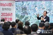 (케이엠뉴스) 이현재 하남시장은 28일 덕풍1동 행정복지센터에서 열린 ‘주민과의 대화’에 참석해 지하철 3호선 연장 및 원도심 정주 여건 개선 등 주요 현안에 대한 추진 상황을 주민들에게 설명했다. 이현재 시장은 먼저 지역 교육 여건의 변화상을 언급하며 원도심 교육 경쟁력 강화에 대한 의지를 보였다. 덕풍1동에 소재한 남한고등학교는 지난해 말 교육부 주관 ‘자율형 공립고’에 선정되어 향후 5년간 하남시, 교육청 등으로부터 총 15억 원의 예산을 지원받을 예정이다. 이를 통해 무학년제와 심화 교육과정 운영, AI 기반 학습 환경 구축 등 공교육 혁신이 본격적으로 추진된다. 교통 분야 핵심 현안인 지하철 3호선 연장 사업은 현재 2032년 준공을 목표로 진행 중이다. 하남시는 가칭 신덕풍역 역사의 위치를 당초 계획보다 340m 북측으로 이동해 만남의 광장과 연계하는 방안에 대해 협의를 완료했다. 시는 원도심 주민들의 보행 접근성을 높이기 위해 연결통로 설치 등 보행 접근 개선 방안을 국토부 및 LH와 지속적으로 협의해 나갈 방침이다. 중부고속도로 주변 방음터널 설치 사업은 하남분기점과 하남나들목 사이 약 1.6km