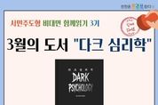 (케이엠뉴스) 인천광역시교육청서구도서관은 2026년 시민주도형 비대면 함께읽기 3기 프로그램 ‘다크심리학 함께 읽기’ 참여자를 모집한다. 이번 프로그램은 시민 선정 도서인 ‘다크심리학’을 함께 읽으며 인간 본성의 어두운 면과 숨겨진 심리를 탐구하고 자신을 보호하는 방법을 다루는 과정으로, 3월 9일부터 27일까지 운영한다. 참여 신청은 서구도서관 누리집에서 20일 오전 10시부터 진행되며, 자세한 사항은 도서관 누리집을 확인하거나 종합자료실로 문의하면 된다.