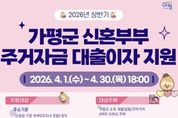 (케이엠뉴스) 가평군이 신혼부부의 주거비 부담을 줄여주기 위해 대출이자 지원에 나선다. 군은 ‘2026년 상반기 신혼부부 주거자금 대출이자 지원사업’을 실시하고, 오는 4월 1일부터 30일까지 신청을 받는다고 밝혔다. 신청은 거주지 읍면 행정복지센터를 방문하거나 경기도 일자리재단 통합접수시스템을 통해 가능하다. 이번 사업은 2025년 하반기(7월~12월)에 납부한 전세 또는 매입자금 대출이자를 대상으로 가구당 최대 150만원까지 지원하는 내용이다. 지원 대상은 가평군에 거주하는 혼인신고일 기준 7년 이내 신혼부부로, 기준 중위소득 200% 이하에 해당해야 한다. 군은 가평군 소재 주택의 전세 또는 매입 자금 용도로 금융기관에서 대출을 받은 약 100가구를 선정해 지원할 계획이다. 군 관계자는 “신혼부부 주거자금 대출이자 지원사업을 통해 주거 부담을 덜고 안정적인 지역 정착을 돕겠다”며 “앞으로도 신혼부부를 위한 다양한 혜택을 확대하는 방안을 지속적으로 마련하겠다”고 말했다.
