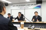 (케이엠뉴스) 경기도와 민주노총 경기도본부가 5일 경기도청에서 노정 간 신뢰를 바탕으로 한 협력 선언을 했다. 이날 행사에는 고영인 경기도 경제부지사를 비롯해 김도형 경기도 노동국장, 김진희 민주노총 경기도본부장 등이 참석했다. 양측은 지난 1월 노정협의 상견례를 통해 첫 공식 만남을 가진 바 있다. 이번 협력 선언을 통해 경기도와 민노총 경기도본부는 ▲공공부문 노동권 보장 및 확대 ▲노동가치를 우선으로 한 행정 구현 ▲연 2회(상․하반기) 경기도-민노총 경기도본부 간 정례회의 추진 ▲경기도 정책의 공공성 강화 및 폭넓은 대화 창구 구축을 약속했다. 경기도는 노정협의 요구안의 정책 반영 논의를 위해 3월 중 관계부서 실무회의를 열 계획이다. 고영인 경제부지사는 “노동 존중 사회로 나아가는 실질적인 변화를 위해 경기도와 민노총이 협조 체계를 구축하고 지속적인 소통과 협력을 이어나갈 것”이라고 말했다.