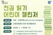 (케이엠뉴스) 구리시 교문방정환도서관은 경기도 지원사업의 일환으로 연중 어린이 독서 장려 프로그램 '천 권 읽기 어린이 챌린저'를 운영하며 참가자를 모집한다. '천 권 읽기 어린이 챌린저'는 어린이들이 1,000권 읽기를 목표로 꾸준한 독서 습관을 형성할 수 있도록 돕는 프로그램이다. 참여를 희망하는 어린이는 구리시립도서관 관외 대출 회원 가입 후 홈페이지 또는 방문 신청을 통해 참여할 수 있으며, 독서 활동 기록장을 배부받아 읽은 도서에 대해 스탬프를 적립하게 된다. 기존에 사용하던 천 권 읽기 독서기록장이 있는 경우에는 이어서 계속 사용할 수 있다. 도서관에서 대출한 도서는 1권당 스탬프 1개가 적립되며, 가정에서 읽은 도서를 독서기록장에 작성하면 1회 최대 3권까지 추가 스탬프를 적립할 수 있다. 또한 천 권 읽기 추천 도서를 대출하면 1권당 스탬프 1개가 추가로 적립된다. 스탬프 적립 단계에 따라 다양한 혜택도 제공된다. 100개 적립 시 대출 권수가 10권으로 확대되며, 250개 적립 시 추가 대출권 10장이 제공된다. 500개 적립 시에는 대출 권수가 20권으로 확대되고, 최종 1,000