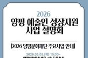 (케이엠뉴스) 양평문화재단은 오는 3월 5일, 양평생활문화센터 1층 다목적실에서 지역 예술인의 지속 가능한 활동을 지원하기 위한 ‘2026 예술인 성장지원사업 설명회’를 개최한다고 밝혔다. 이번 사업은 지역 내 신진·청년 예술인을 중심으로 창작 역량에 비해 부족했던 성장 기회를 제공하고, 기존 지원사업을 일회성 지원으로 그치지 않고 지속적인 지원 체계를 구축하기 위해 마련됐다. 재단은 예술인 스스로 활동할 수 있는 환경을 만들고 지역 예술 생태계를 활성화하는 것을 목표로 하고 있다. 설명회는 크게 세 가지 내용으로 구성된다. 첫째, 2026년 진행 예정인 공모 지원사업 계획을 공유한다. 양평문화재단의 주요 사업인 ‘모든예술31’, ‘물맑은 어울림 음악회’, ‘생활문화지원사업’은 물론 외부 기관의 공모사업 정보도 함께 제공될 예정이다. 둘째, 예술인을 위한 행정 실무 교육이 진행된다. 공모사업의 구조와 신청 절차, 사업계획서 작성 방법, 정산 시 유의사항 등 현장에서 필요한 실무 중심 교육을 통해 예술인의 행정 부담을 완화할 것으로 기대된다. 셋째, 향후 예술인 지원 확대를 위한 수요 조