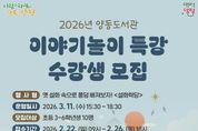 (케이엠뉴스) 양평군은 새 학기를 맞아 양동도서관에서 초등학생을 대상으로 운영하는 ‘이야기 놀이 특강’의 수강생을 오는 22일부터 26일까지 모집한다고 밝혔다. 이번 특강은 옛 설화 속 주인공이 되어 또래와 협력해 이야기를 만들어 보는 스토리텔링 프로그램이다. 시나리오 속에서 나만의 캐릭터를 만들고 싶은 초등학교 3~6학년 학생이라면 누구나 신청할 수 있다. 강좌는 3월 11일 오후 3시 30분부터 약 3시간 동안 참여형 프로그램으로 진행되며, 장소는 양동도서관 3층 강의실이다. 전진선 양평군수는 “앞으로 양동도서관이 어린이들에게 다양한 독서문화 프로그램을 제공하고, 이번 특강이 초등학생들의 문해력 향상에 도움이 되기를 바란다”고 전했다.