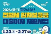 (케이엠뉴스) 파주시는 청년가구의 주거비 부담을 완화하기 위한 청년 전월세 임차보증금 대출이자 지원사업 신청을 오는 1월 23일부터 2월 27일까지 받는다. ‘청년 전월세 임차보증금 대출이자 지원’은 파주시에 주민등록을 둔 무주택 가구 중 제1금융권에서 전월세 보증금 대출을 받은 19~39세 청년에게 대출 잔액의 2% 이자(연 최대 200만 원)를 지원하는 사업으로, 상·하반기 각 10가구를 선정해 최대 100만 원씩 반기별로 총 2회 지급한다. 신청 대상은 1986년 1월 20일부터 2007년 1월 21일 사이에 출생한 청년으로 하며, ▲공고일 기준 세대원 전원 무주택자 ▲기준 중위소득 180% 이하(1인 가구 기준 461만 6천 원) ▲파주시에 소재한 주택으로 전세 임차보증금 3억 이하(월세의 경우 전월세 전환율 6.7% 이하) 및 전용면적 85㎡ 이하의 주택에 거주해야 한다. 단, 기초생활보장수급자(생계, 의료, 주거급여)와 공공임대주택 거주자, 버팀목 대출 등 주택도시기금을 통해 전세자금을 대출받은 사람, 금융권의 대출 용도가 신용·일반 용도인 경우는 지원 대상에서 제외된다. 지원을 원하는