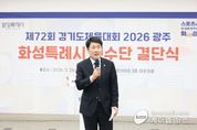 (케이엠뉴스) 화성특례시의회는 26일 화성종합경기타운 3층 라운지홀에서 열린 제72회 경기도체육대회 화성시 선수단 결단식에 참석해 선수단을 격려하고 4연패 달성을 위한 결의를 다졌다. 이날 행사에는 배정수 의장을 비롯해 김종복 문화복지위원장, 송선영·이용운 의원, 화성시체육회 임원과 종목단체 관계자, 선수단 등 약 150여 명이 참석했다. 이날 결단식은 경기도체육대회 출전을 앞둔 선수단의 사기를 높이고 각오를 다지는 자리로 마련됐다. 화성특례시 선수단은 오는 4월 16일부터 18일까지 광주시 일원에서 열리는 제72회 경기도체육대회에 출전한다. 육상, 수영, 축구 등 27개 종목에 참가해 종합우승 4연패에 도전한다. 배정수 의장은 “묵묵히 쌓아온 훈련의 시간과 노력을 믿고 끝까지 당당하게 경기에 임해주시기 바란다”며 “선수 여러분의 땀과 투혼이 화성특례시의 자부심”이라고 말했다. 이어 “화성특례시의회도 선수들이 오직 경기에 집중할 수 있도록 체육 환경 조성과 지원에 최선을 다하겠다”며 “4연패 달성을 진심으로 기원한다”고 덧붙였다. 화성특례시의회는 선수들이 충분한 기량을 펼칠