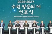(케이엠뉴스) 이재준 수원특례시장이 24일 수원컨벤션센터에서 열린 ‘2026-2027 수원 방문의 해’ 선포식에서 “수원의 문을 세계로 활짝 열겠다”고 말했다. 이재준 시장은 기념사에서 “수원 방문의 해는 수원의 가치를 세계와 나누겠다는 가슴 벅찬 선언”이라며 “수원은 케이(K)-콘텐츠를 선도하고, 한국 방문 관광객 2000만 명 시대를 견인할 역량이 충분한 도시”라고 밝혔다. 이어 “수원은 세계가 주목하는 ‘글로벌 문화관광 도시’가 될 수 있다”며 “희망찬 여정에 시민 모두가 도시의 주인이라는 마음으로 함께해 주시길 바란다”고 말했다. 이날 선포식은 수원 방문의 해 로고 기수단 입장으로 시작됐다. 이재준 수원시장과 산하기관·관광업계·시민단체 대표 30명이 기수로 참여했다. 수원시는 수원화성 축성 230주년(2026년), 수원화성 유네스코 세계문화유산 지정 30주년(2027년)을 맞아 수원 방문의 해를 선포했다. 슬로건은 ‘수원, 당신을 위한 관광도시(Suwon For You)’다. 연간 1500만 명이 찾는 글로벌 관광도시를 발돋움하는 것을 목표로 설정했다. 수원 방문의 해 5대 추진
