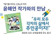 (케이엠뉴스) 파주시 해솔도서관은 오는 26일 ‘윤해연 작가와의 만남: 우리 모두 각자의 삶에서 주인공이지’를 진행한다. 이번 행사는 해솔도서관 어린이 자료실 3~4월 전시 도서 연계 프로그램의 일환으로, 도서관 전시 도서에 대한 관심을 배가시키고, 어린이들이 직접 전시 도서의 주제(‘네 삶의 주인공이 되어줘!’)와 관련된 활동에 참여할 수 있도록 마련됐다. 특히, 윤해연 작가와 또래 친구들과 함께 그의 도서 '용기를 부르는 신호'(서유재, 2025)에 등장하는 인물들이 내는 서로 다른 용기를 들여다보며 주인공이란 특별한 능력을 지닌 사람이 아닌, 용기를 내고 한 걸음씩 나아가는 사람이라는 것을 깨닫게 되는 시간이 될 것으로 기대된다. 윤해연 작가는 2014년 비룡소 문학상, 2014년 대교 눈높이 문학상, 2022년 창원 아동 문학상, 2024년 부마항쟁 문학상을 수상했다. 그의 최근작 '용기를 부르는 신호'는 작가 특유의 능청스러운 유머와 재치가 생생한 인물들을 만나 때로는 뭉클한 여운으로 때로는 슬그머니 비어져 나오는 웃음으로 감동을 주며 자극적으로 기획된 시리즈들이 넘쳐나는 어린이 문학 시장에서 오랜만에 동화의 본령