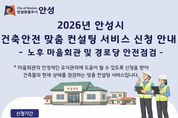 (케이엠뉴스) 안성시는 올해 ‘건축안전 맞춤 컨설팅 서비스(노후 마을회관 및 경로당 안전점검)’를 시행한다고 밝혔다. 건축안전 맞춤 컨설팅 서비스는 관련 법령상 정기 점검 의무가 없어 정확한 실태 진단과 안전 취약 요소 파악에 어려움이 있는 소규모 노후 마을회관 및 경로당을 대상으로 안전점검을 실시해, 건물 노후화로 인한 안전사고를 예방하고 시민의 안전한 생활환경 조성에 기여하고자 시행하는 사업이다. 점검 대상은 '건축물관리법' 제15조에 따른 소규모 노후 건축물 점검 대상 중 안전에 취약하거나 재난의 위험이 있다고 판단되는 마을회관 및 경로당이다. 주요 점검 항목은 ▲ 건축물 주요 부재의 구조적 균열과 변형 상태 ▲ 건축물 비구조체 결함 사항 ▲ 주변 축대, 옹벽, 담장 등의 안전상태 등이며, 점검자가 직접 현장을 방문해 육안점검 방식으로 진행된다. 점검을 희망하는 마을회관 및 경로당의 소유자 또는 관리자는 신청서를 작성해 안성시청 건축과에 방문 접수하거나 등기우편으로 접수할 수 있으며, 신청은 연중 상시 가능하다. 점검 후에는 건축물 관리자에게 점검 결과와 함께 보수·보강 등 개선