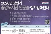 (케이엠뉴스) 군포시중앙도서관은 시민의 인문학적 소양을 함양하고 공동체적 성찰의 기회를 확대하고자 ‘중앙도서관 인문숲’ 상반기 강좌를 운영한다. 이번 강좌는 3월과 5월 각 3강좌씩 6개 강좌로, 오전(10시)과 저녁(19시) 시간으로 나누어 진행된다. 각 강좌는 주제별로 4~8회차의 연속 강의로 운영해 시민들이 한 주제를 체계적으로 이해하고 인문학적 사고를 확장을 도울 예정이다. 3월에는 신익철 강사의 '조선의 사회상', 우응순 강사의 '시경', 그리고 이상민 강사의 '아는만큼 보이는 궁궐이야기' 강의를 통해 한국학, 동양철학, 한국사의 견문을 넓히고, 5월에는 김선아 강사의 '역사를 움직인 지배자들', 박영대 강사의 '책임의 생성', 문효정 강사의 '작가로 읽는 현대미술' 강의를 통해 서양 근대사, 서양철학, 현대미술의 견문을 넓히는 시간을 제공한다. 각 강좌별 참여자 모집 인원은 선착순 40명이며, 3월 개강 강좌는 2월 23일, 5월 개강 강좌는 4월 1일부터 모집을 시작하며, 군포시도서관 홈페이지에서 신청할 수 있다.