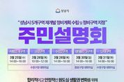 (케이엠뉴스) 성남시는 수정·중원 생활권 재개발 후보지로 선정된 5개 구역의 정비계획 수립 및 정비구역 지정(안)과 관련해 주민 의견을 수렴하고자 오는 3월 25일부터 31일까지 주민설명회를 개최한다. 이번 설명회는 수진2구역, 태평2‧4구역, 산성구역, 단대구역, 상대원1‧3구역을 대상으로 하며, 구역별 정비계획 수립(안)과 향후 추진 절차를 안내하고 주민 의견을 폭넓게 듣기 위해 마련됐다. 설명회 일정은 △3월 25일 오후 2시 태평2‧4구역(수정구청 대회의실)을 시작으로 △3월 26일 오전 10시 산성구역, 같은 날 오후 2시 수진2구역(수정구청 대회의실) △3월 30일 오후 2시 상대원1‧3구역(중원구청 대회의실) △3월 31일 오후 2시 단대구역(수정구청 대회의실) 순으로 진행된다. 설명회에는 해당 구역 토지등소유자와 세입자를 비롯해 재개발 사업에 관심 있는 주민이면 누구나 참여할 수 있다. 시는 지난해 12월 사전 주민설명회를 통해 수렴한 의견을 이번 정비계획(안)에 반영했으며, 이번 설명회를 통해 추가 의견을 폭넓게 수렴할 계획이다. 아울러 주민설명회 이후 정비계획 수립 및